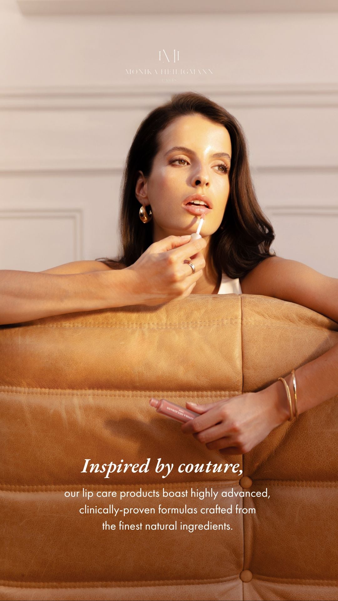 Monika Heiligmann introduces a new era in luxury lip cosmetics. Created by leading doctors in our laboratory, our lip formulas are able to penetrate the lips in a unique way. Acting on the deepest dermis layers, our treatments powerfully hydrate, increase blood microcirculation and stimulate collagen production for visible and lasting results. Proven to support barrier repair, accelerate skin regeneration and improve skin elasticity, our cutting-edge formulas offer true transformative luxury for your lips.